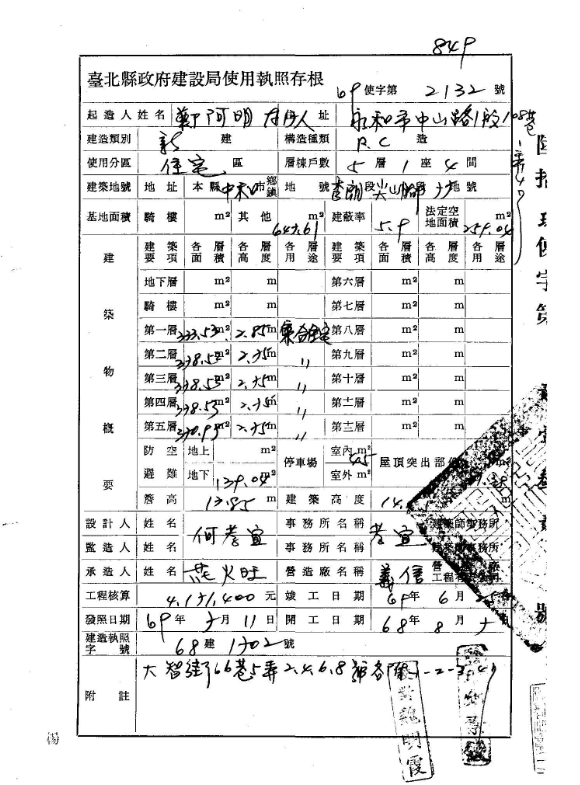 - 主要建材: 鋼筋混凝土造
